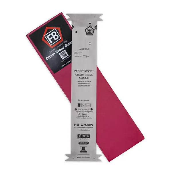 For accurate measurement of chain elongation. Incorporating a precise indication of percentage wear and an easy-to-read sliding scale. Specifically designed for professional use.